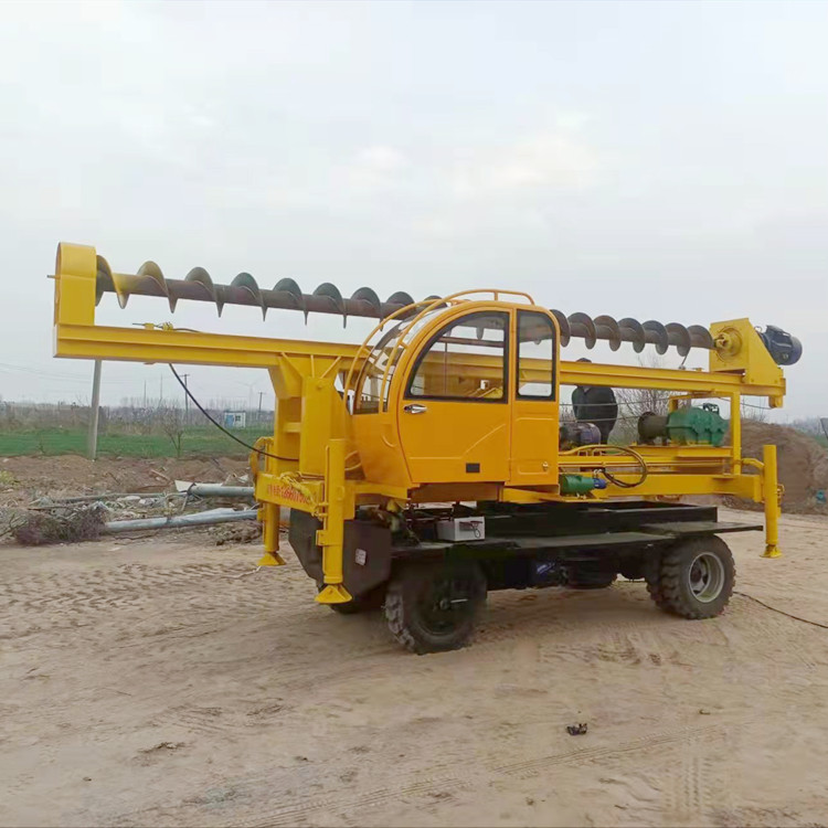农村建房打桩机 轮式360度旋转螺旋钻孔机 圆形桩基础引孔地基钻机