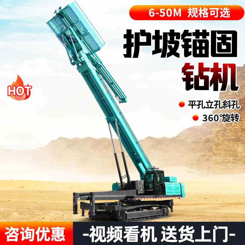 履带式护坡锚固钻机 高举升边坡支护钻孔机 6-50米高度定做