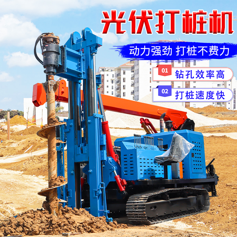 光伏打桩机履带式太阳能发电站工程地基打孔液压螺旋钻孔机引孔机