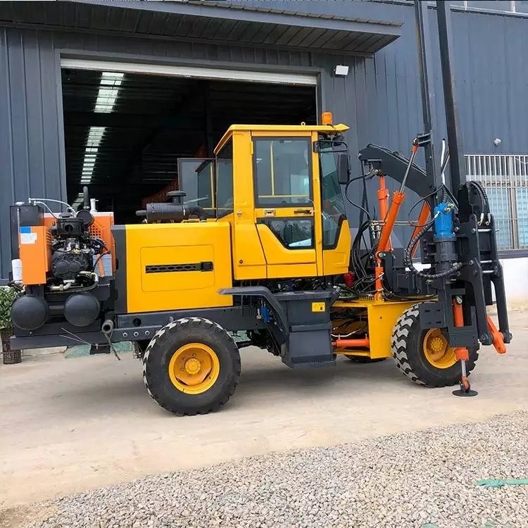 公路护栏安装四轮液压振动打桩机双泵断气刹空压机一体钻孔机