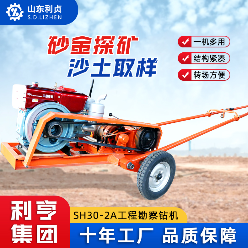 利贞30米砂金探矿钻机 SH30-2A冲击式沙土取样钻机 工程勘察设备