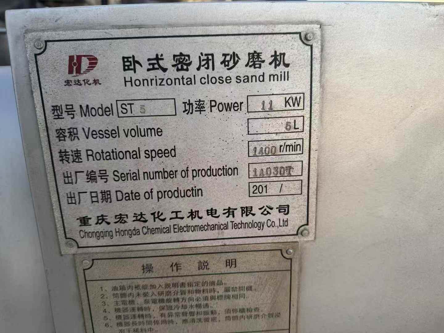航雨机械 二手重 庆宏达产 5升陶瓷纳米棒销砂磨机 包正常使用
