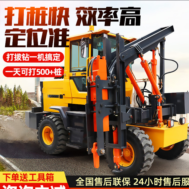 护栏打桩机高速公路围栏修路工程打拔桩一体液压多功能钻孔立桩机
