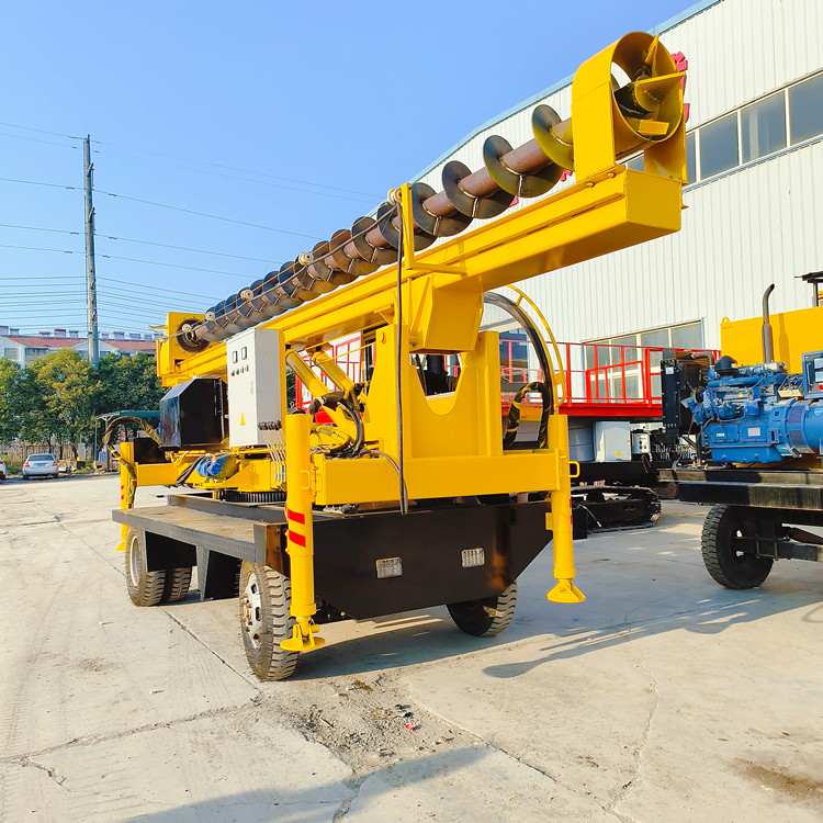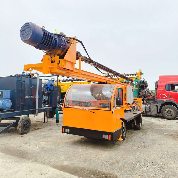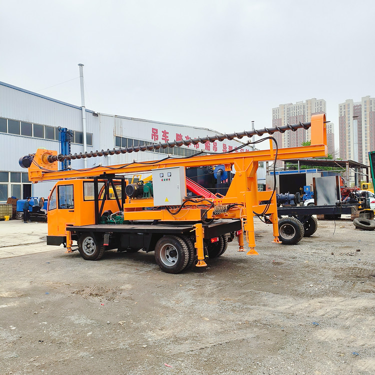 桩架旋转伸缩民房基础打桩机 六轮自制底盘电杆钻孔机 电机自行走式