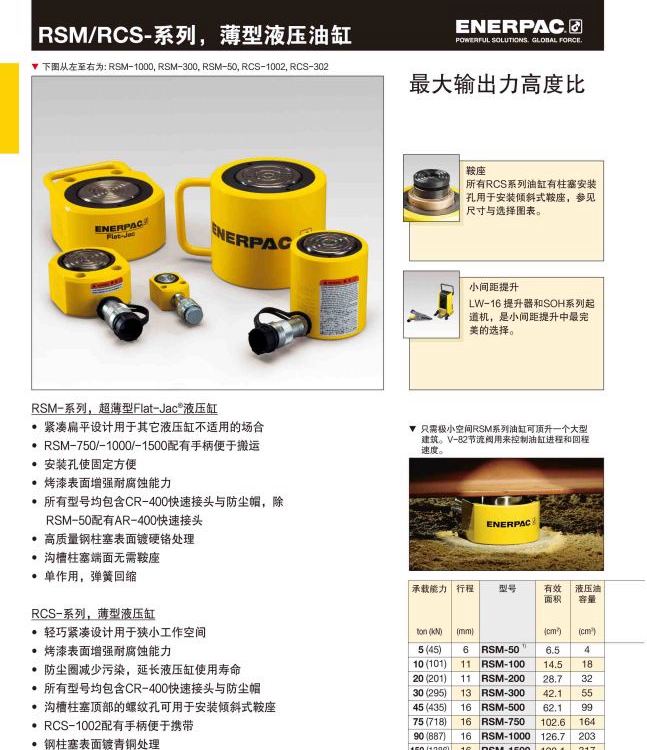 恩派克千斤顶RSM750单作用薄型液压油缸狭小空间作业配手柄