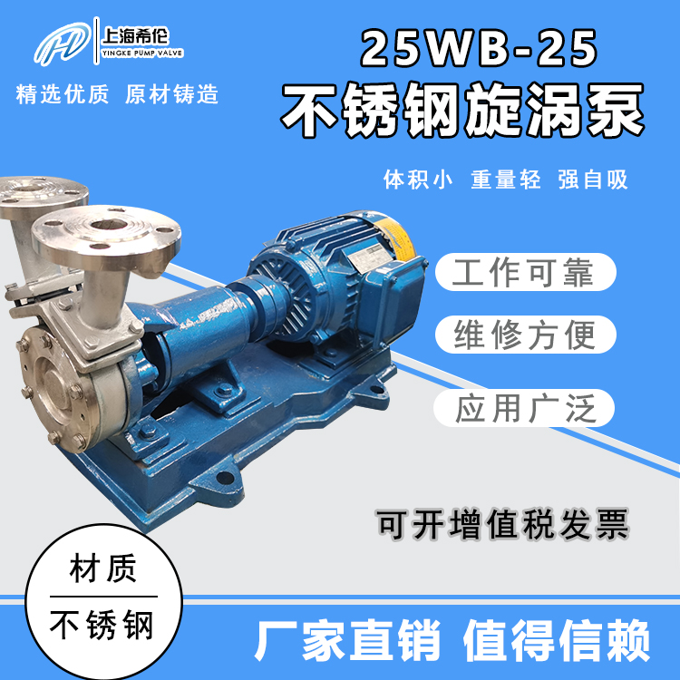 希伦牌防爆304不锈钢卧式380V耐酸碱1.44m3/h 离心旋涡泵25WB-25