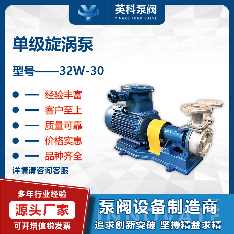 英科泵阀 W型旋涡泵32W-30铸铁功率1.5KW流量2.88m3/h锅炉热水