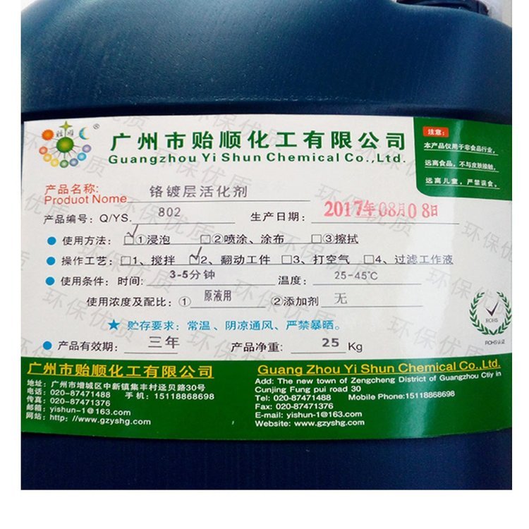 贻顺 Q/YS.802 清除氧化层的铬镀层活化剂 铬氧化膜退除剂表面铬活化剂 铬镀铜前处理剂