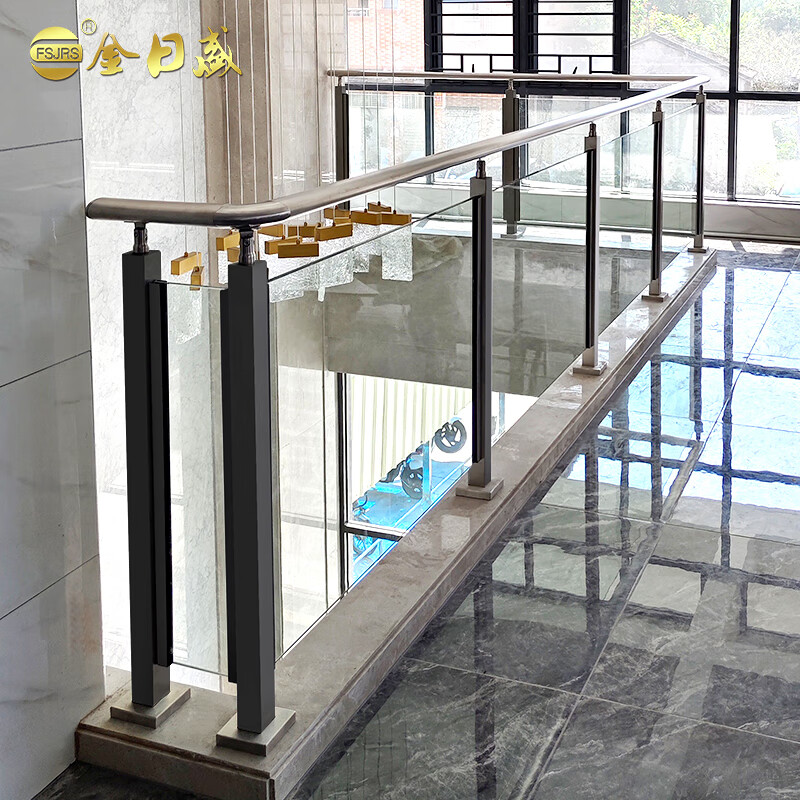 楼梯扶手钢化玻璃阳台护栏304不锈钢栏杆现代简约黑色护栏立柱
