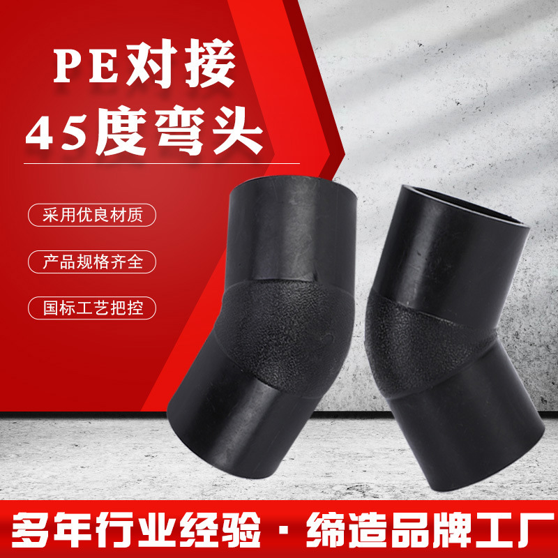 批发PE对接90度弯头热熔PE给水管件黑色全新料塑料管配件63-400