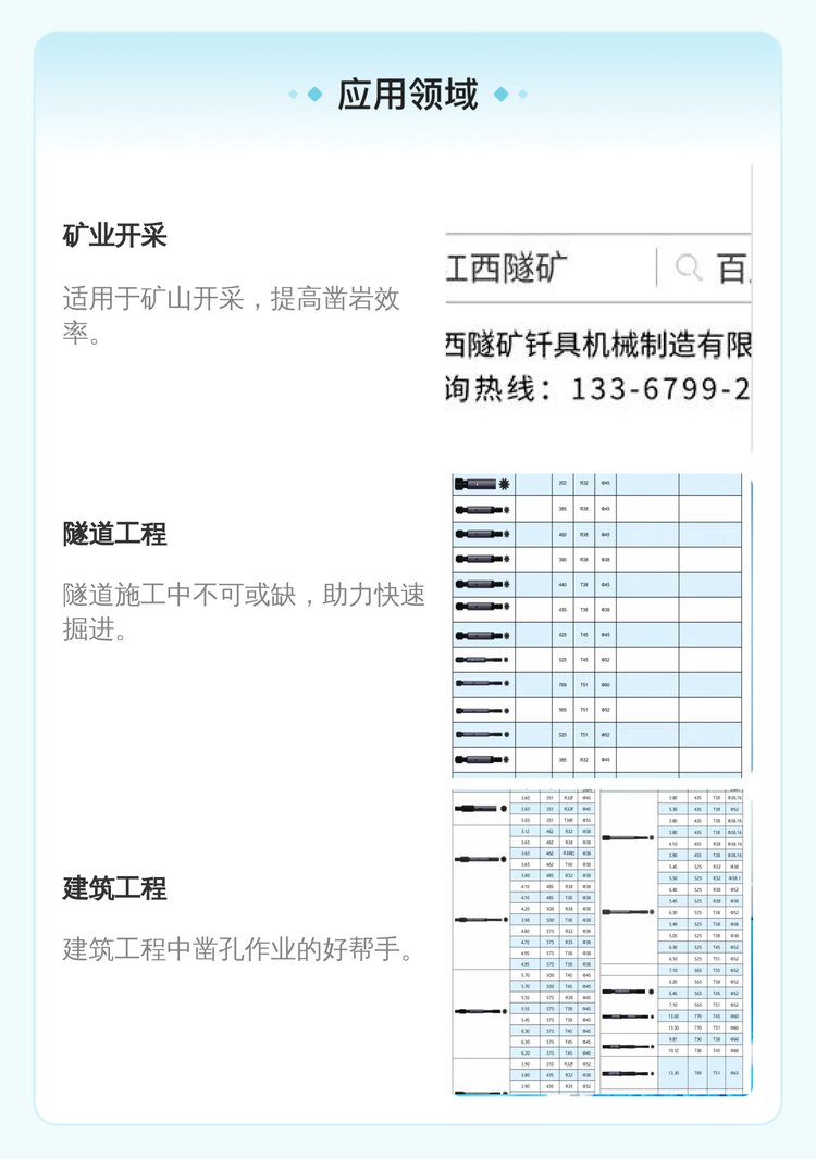 适用范围 | 矿山、隧道等凿岩作业 |