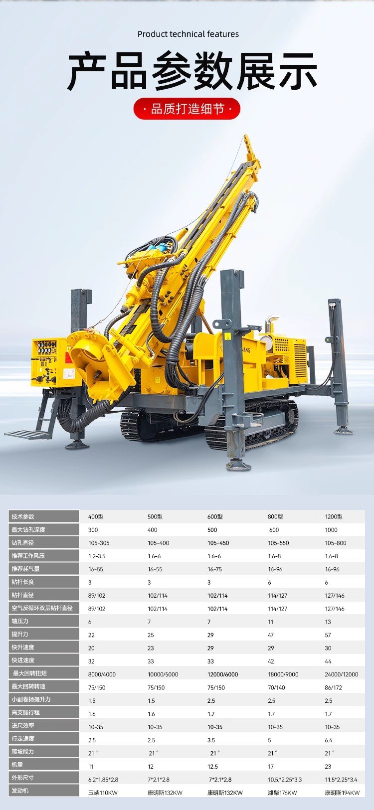 钻井深度 | 500mm |