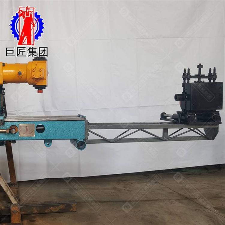 KY-200全液压探矿钻机应用于坑道和地表地质勘探,可打任意倾角钻孔的全液压探矿钻机。KY-200全液压探矿钻机采用全液压动力头结构,由主机、泵站、操纵台三部分组成。解体性好,搬迁运输方便,钻机布置灵活,钻杆拧卸机械化,可减轻工人劳动强度,提高工作效率,可无级调速。KY-200全液压探矿钻机具有联动性能,通过操纵台进行集中操作,简便安全,回转器主轴采用通孔式结构,钻杆长度不受钻机给进行程限制,也可适用于金刚石绳索取芯钻进。