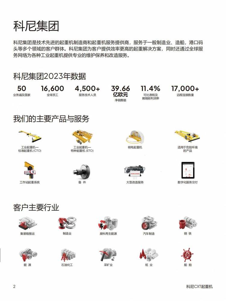 锟恒起重机械(上海)有限公司是国内领先的起重机械及物料搬运设备生产服务商,业务遍及各个工业领域和地区。我们专注于起重行业,具备领先的自主研发和制造能力,七年前,我们和国际一线品牌科尼KONECRANES、德马格DEMAG达成战略合作伙伴协议,成为科尼授权代理商和部分产品OEM加工商;公司具备ISO9001、ISO14001、ISO45001等体系认证,以“真诚、安全、认真、服务”为理念,基于所拥有的资源、专业技术背景及公司理念,我们有信心向客户作出并实现提供超预期产品和服务的承诺。