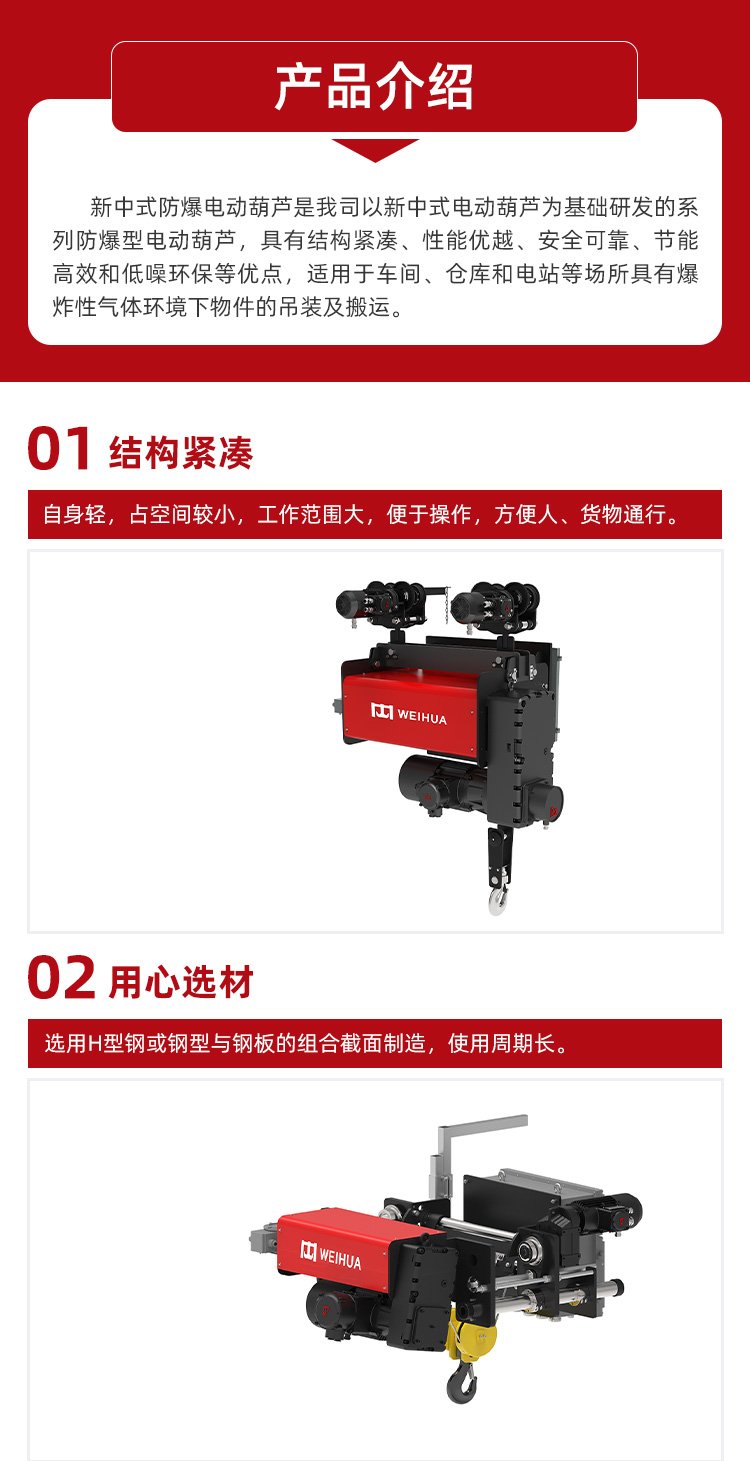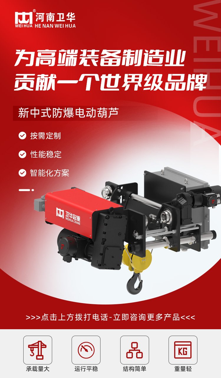 新中式防爆电动葫芦 货物吊装用 电机运行平稳 操作噪音低