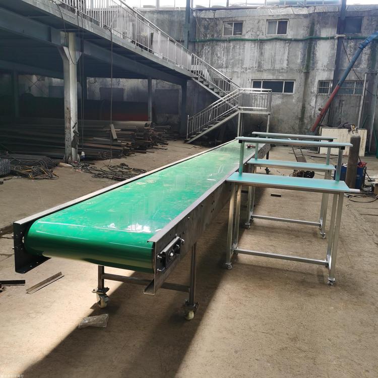 皮带输送机具有输送能力强,输送距离远,结构简单易于维护,能方便地实行程序化控制和自动化操作。运用输送带的连续或间歇运动来输送100KG以下的物品或粉状、颗状物品,其运行高速、平稳,噪音低,并可以上下坡传送。