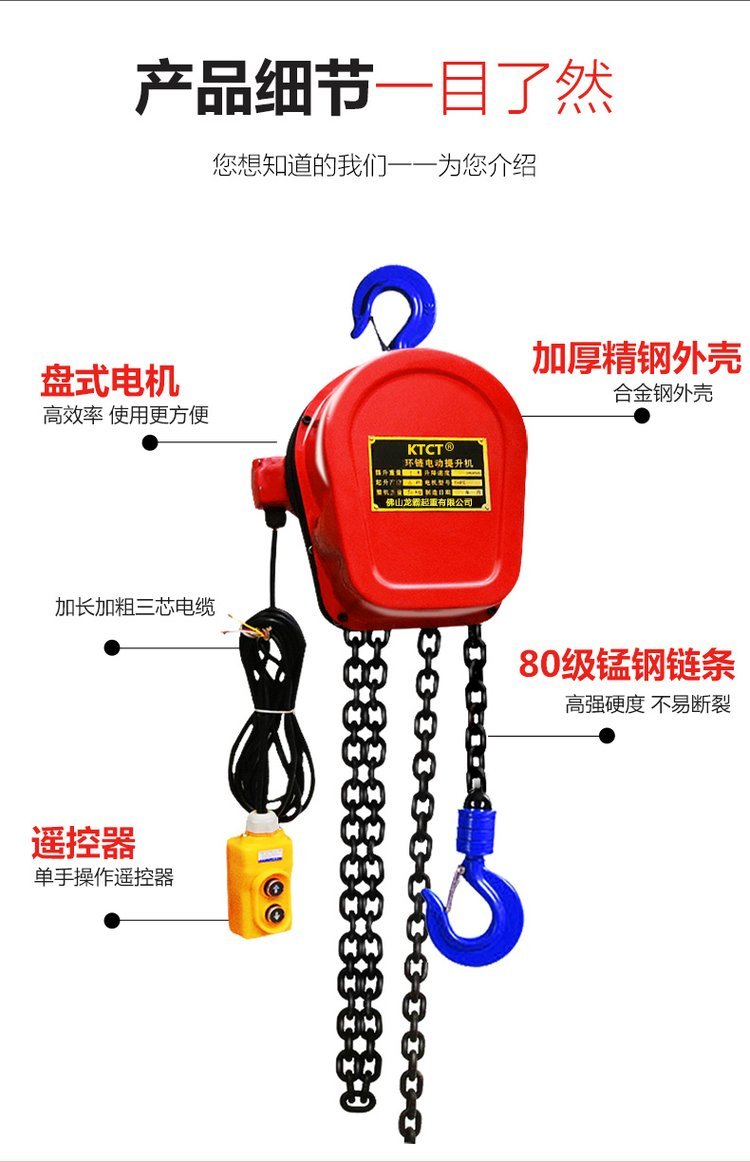 ktct环链电动葫芦三相盘式电机2吨10吨链条吊机倒链电动起重葫芦