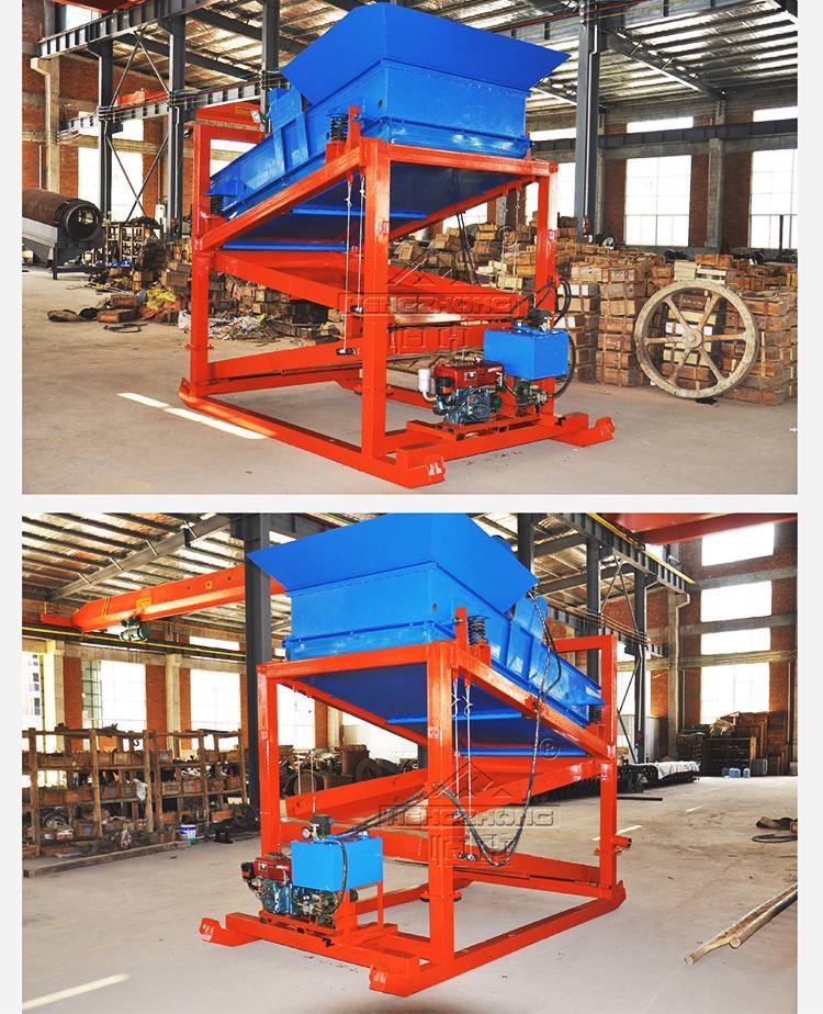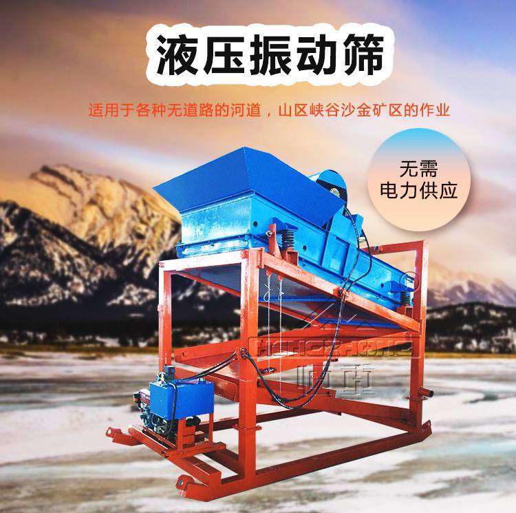 液压振动筛适用于各种无道路的河道,山区,峡谷沙金矿区的作业,无需电力供应。设计为整机可拆装成人力可搬运,快速拆解,快速组装,运行稳定,故障率低,操作简单。移动便利。采用两段溜金槽设计,新型吸金毯,可对粗颗粒、细颗粒单体金同时回收。