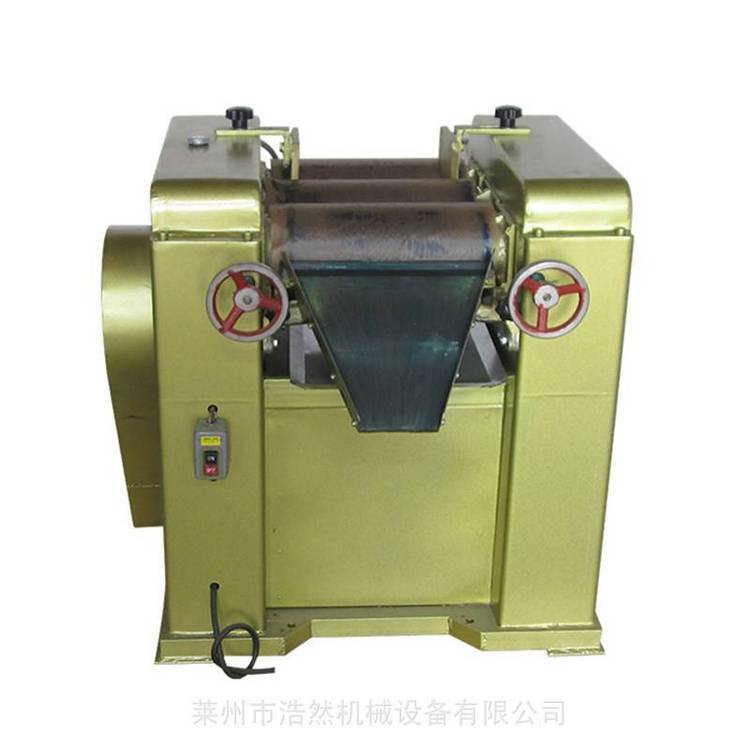 三辊研磨机,也称三辊机。该研磨机主要用于研磨各种油漆、油墨、肥皂、香皂、色浆、油彩颜料、塑料、食品等膏状物料,但不适用于研磨带有酸、碱成份或足以导致辊筒腐蚀的物料。它是油漆,油墨等工厂研细膏状物料的主要设备。