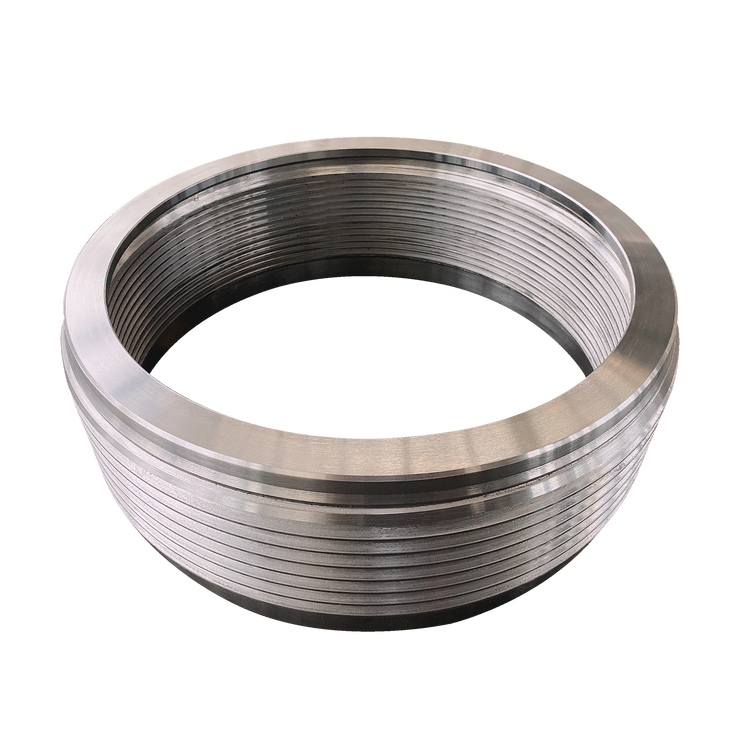 内侧螺套大量应用于矿山、工程骨料设备圆锥破上,属于圆锥破动锥衬板锁紧组件,配合顶部螺母、焊接环使用,其主要作用为锁紧动锥衬板,保护动锥总成。