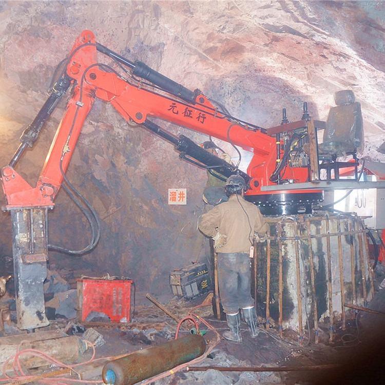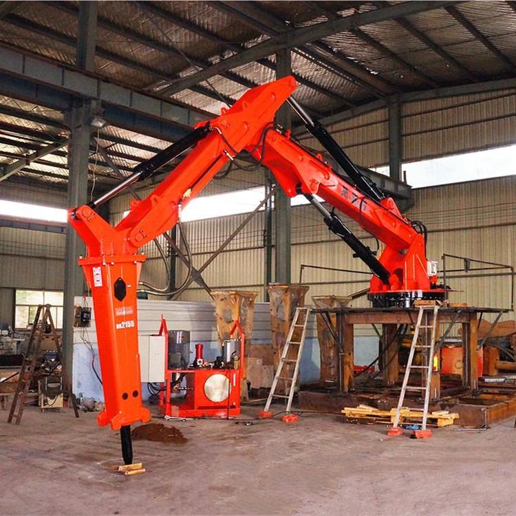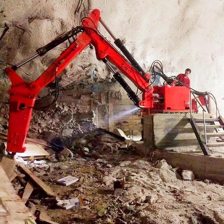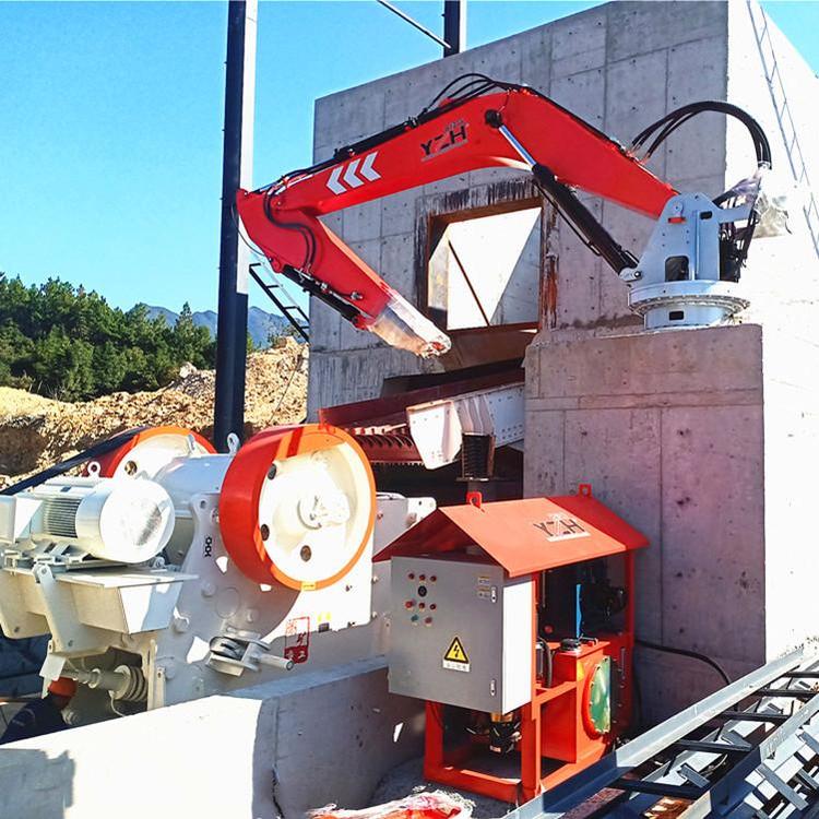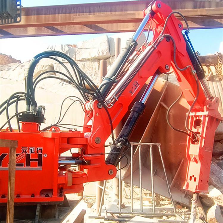 固定式液压机械臂,主要安装于工业厂矿、井下、铸造冶金炉口等区域,用于对大块坚硬岩石、矿石破抓取以及钢包炉衬清渣拆除作业