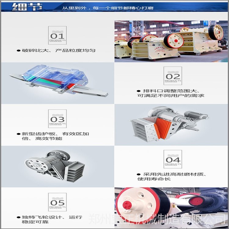 动颚上端直接悬挂在偏心轴上,作为曲柄连杆机构的连杆,由偏心轴的偏心直接驱动,动颚的下端铰连着推力板支撑到机架的后壁上。当偏心轴旋转时,动颚上各点的运动轨迹是由悬挂点的圆周线(半径等于偏心距),逐渐向下变成椭圆形,越向下部,椭圆形越偏,直到下部与推力板连接点轨迹为圆弧线。由于这种机械中动颚上各点的运动轨迹比较复杂,故称为复杂摆动式颚式破机。