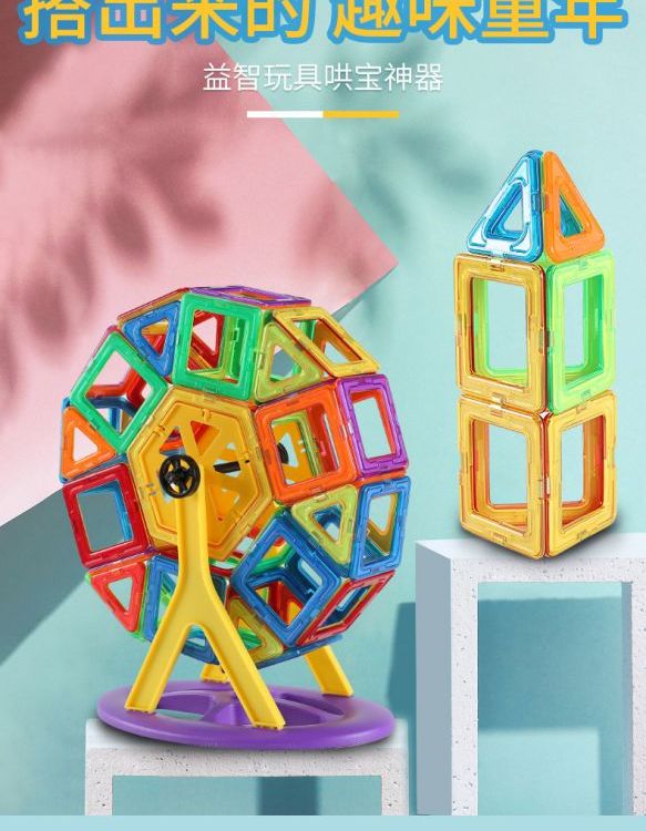 磁力片磁力积木儿童磁性玩具强磁铁磁性彩窗片拼装百变磁力棒