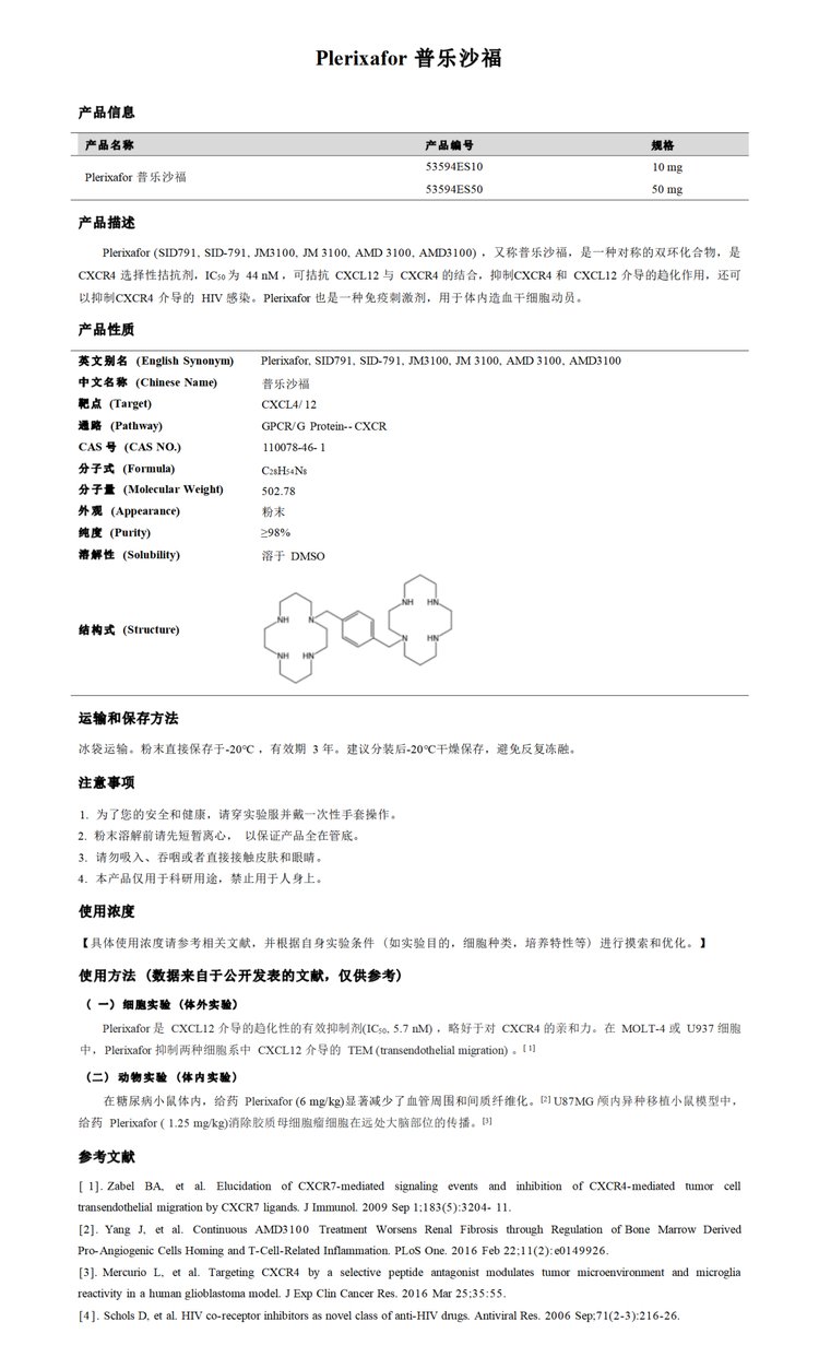 Plerixafor CXCR4拮抗剂/CXCR7变构激动剂