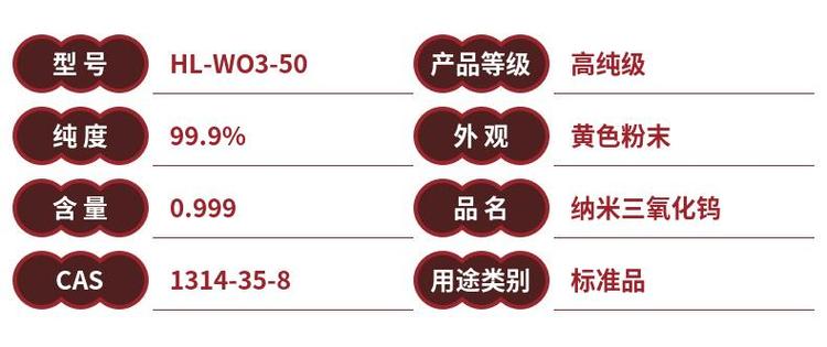 纳米三氧化钨 nm WO 国标 高纯级 99.9% HL-WO3-50