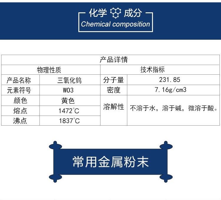 中科欧德 高纯三氧化钨粉 99.95%纯度 325目 1kg装