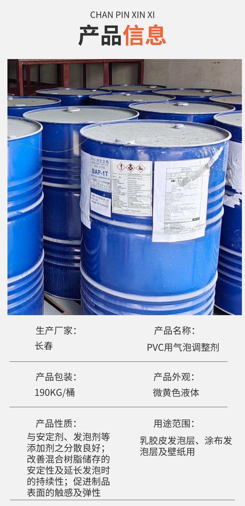 产品用途 | 提升PVC产品品质稳定性、热安定性 |