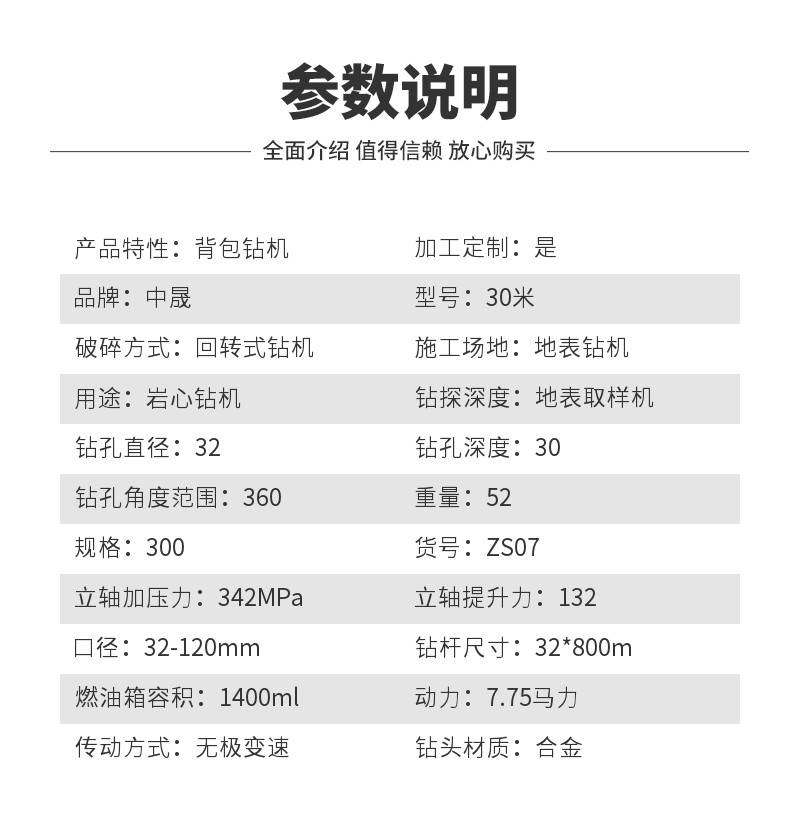 手持式勘探背包钻机钻头30米岩心钻探打孔机取样式地质钻探设备