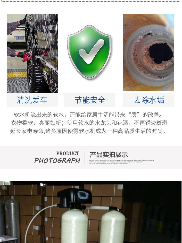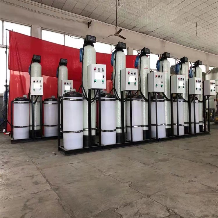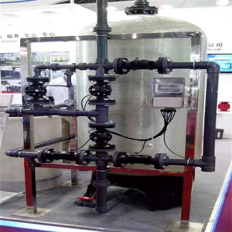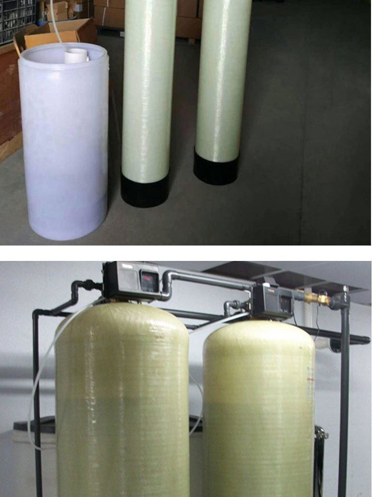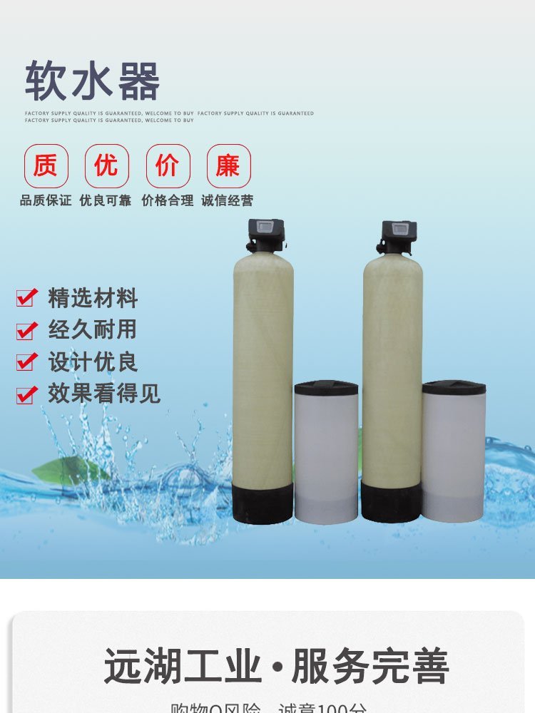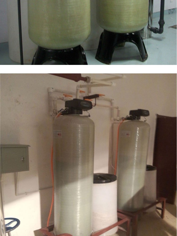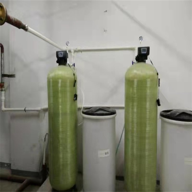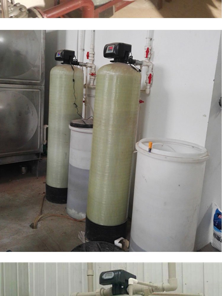 水的硬度主要由其中的阳离子:钙(Ca2+)、镁(Mg2+)离子构成。 当含有硬度的原水通过交换器的树脂层时,水中的钙、镁离子被树脂吸附,同时释放出钠离子,这样交换器内流出的水就是去掉了硬度离子的软化水,当树脂吸附钙、镁离子达到一定的饱和度后,出水的硬度增大,此时软水器会按照预定的程序自动进行失效树脂的再生工作,利用较高浓度的氯化钠溶液(盐水)通过树脂,使失效的树脂重新恢复至钠型树脂。