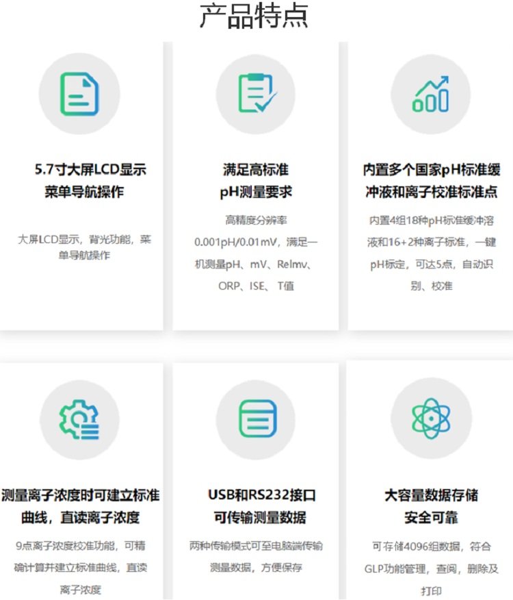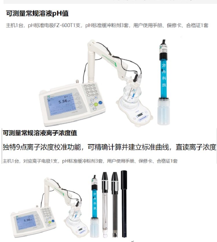检测项目 | pH、mV/RelmV/ORP、离子、温度 |