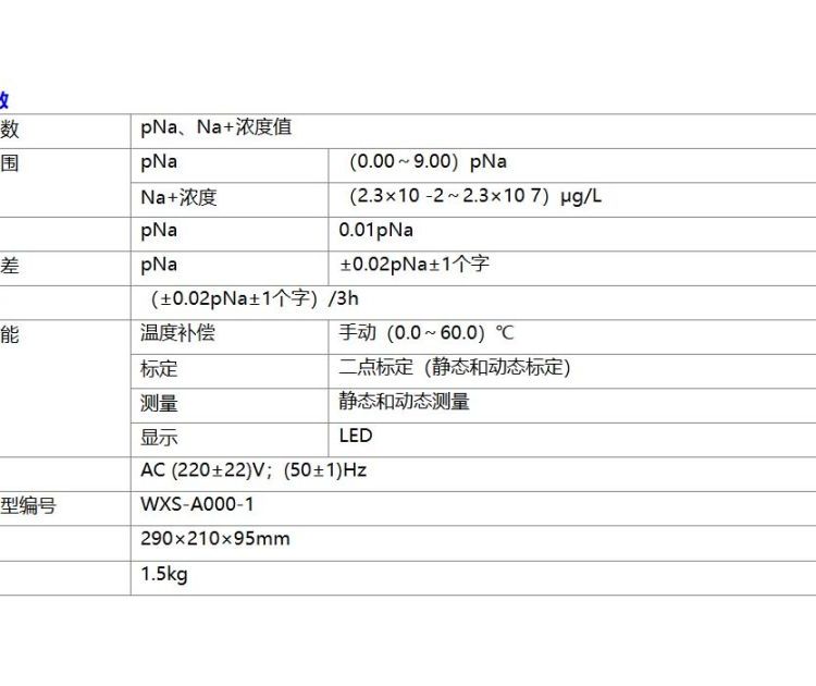 测量范围,pNa:(0.00~9.00)pNa