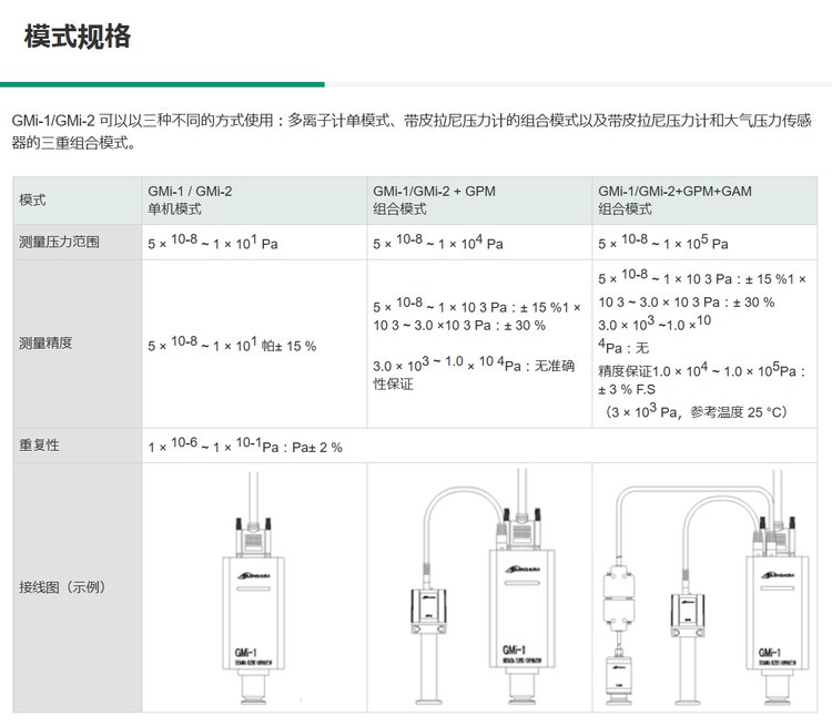 可测量从大气压到高真空范围(105 至 5×10-8 Pa)(同时使用 GPM 和 GAM 时)