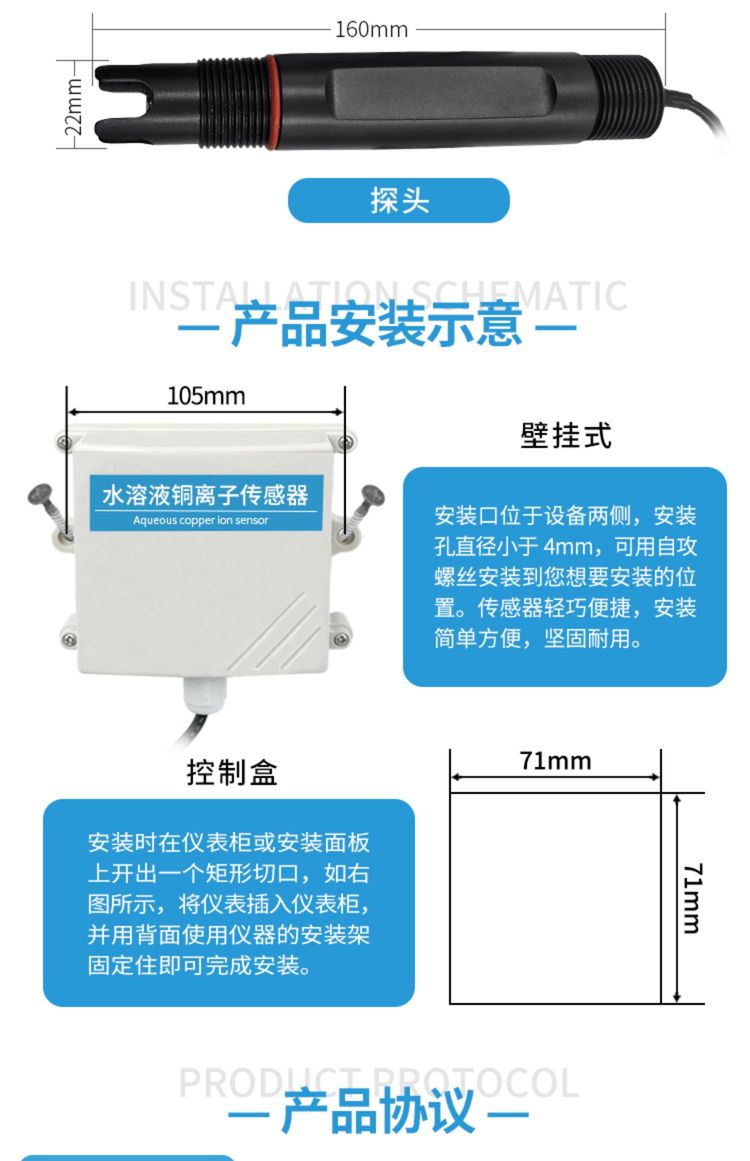 铜离子传感器工业在线水溶液检测仪铜离子计水质变送器测试仪 2999.00 / 台