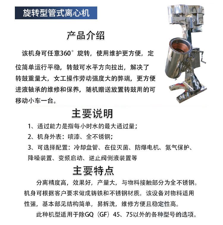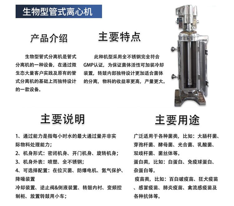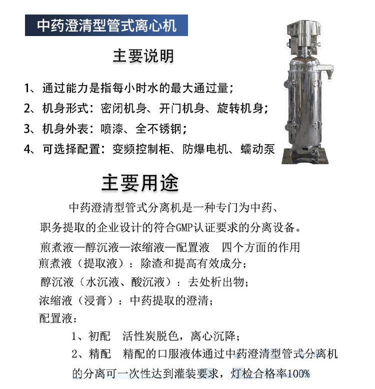 常作为 | 管式离心机的预处理设备 |