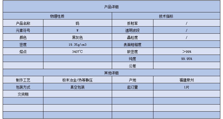 磁控溅射 钨靶材 W靶 金属钨靶 高纯钨 科研实验 高熔点难熔金属