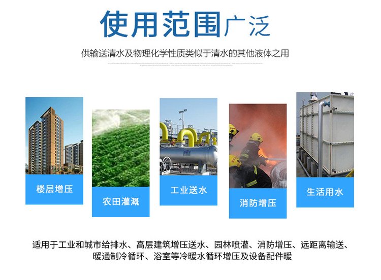 使用场景 | 楼层增压/农业灌溉/消防增压/工业送水 |