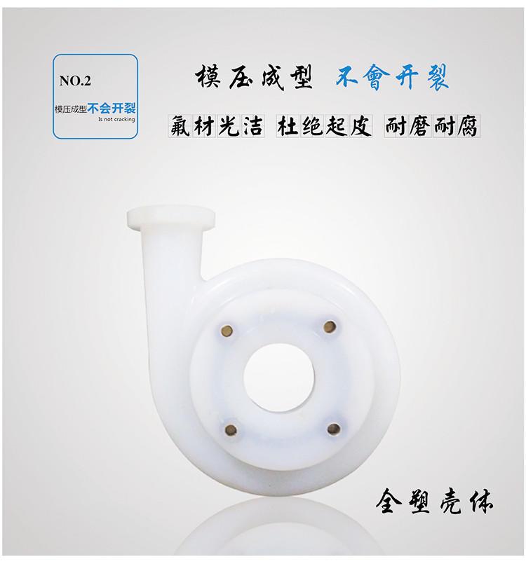 FSB(L)系列泵壳采用氟塑料合金材料,支架和轴承箱连体式设计,整机更加轻巧,不占用场地。广泛运用于碱、苯、化成箔、酸洗、农药、造纸、钢铁等行业。能够输送强腐蚀性酸、碱、盐、有机溶剂等介质。特点:机械强度高;抗氧化性好;无毒素分解;泵腔流道光滑效率高;可长时间在-2095温度的条件下稳定运行。