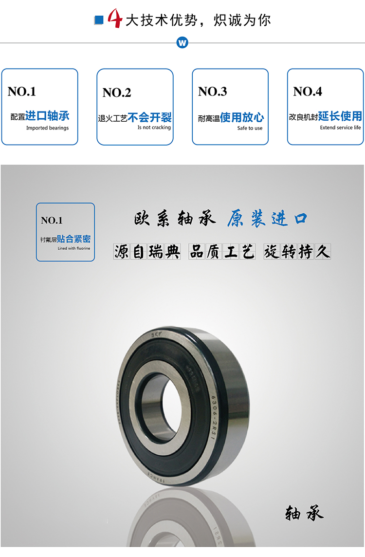 3.如果对国产的哈轴、瓦轴、洛轴信心不足的话,我们可为您配置进口轴承,如:日本精工NSK轴承,瑞典SKF轴承。二者在价格上有一定的落差。