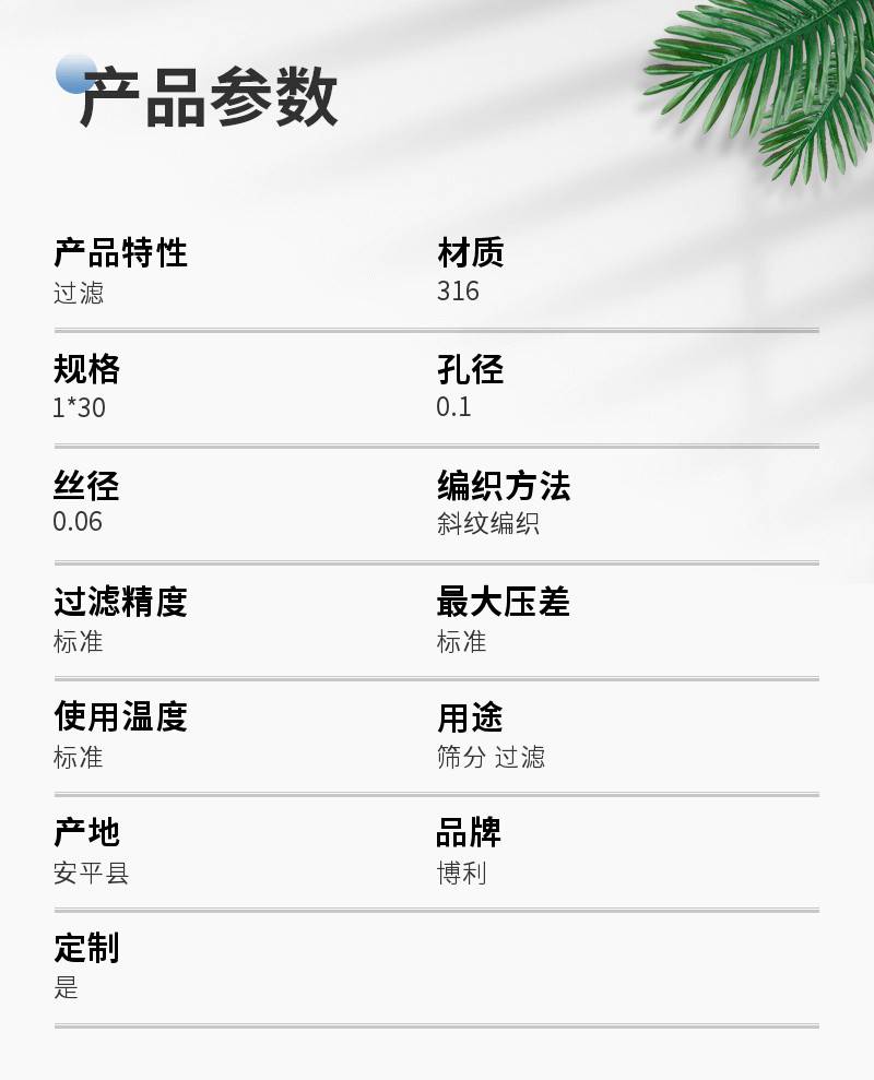 博利316不锈钢筛网 1*30规格 0.1孔径斜纹编织