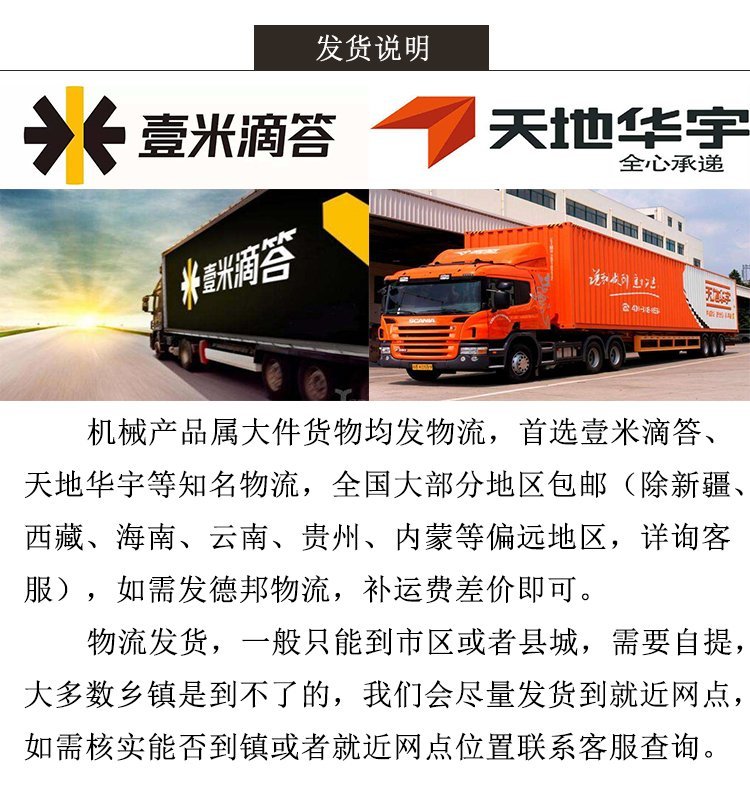 物流说明 | 大件货物只走物流,货到物流网点会联系用户自提 |