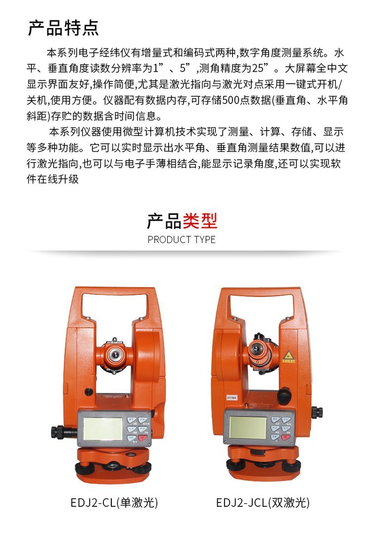 博飞激光经纬仪高精度工程测绘仪DJD2-JCL上下激光电子经纬仪 3352.00