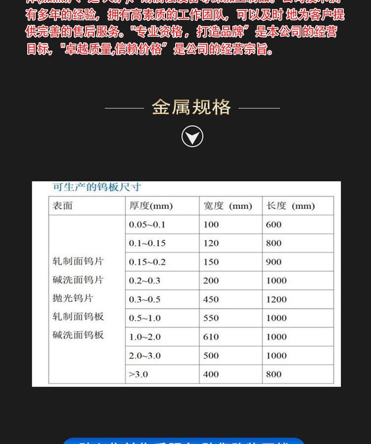 主要金属含量 | 钨含量99.95% |