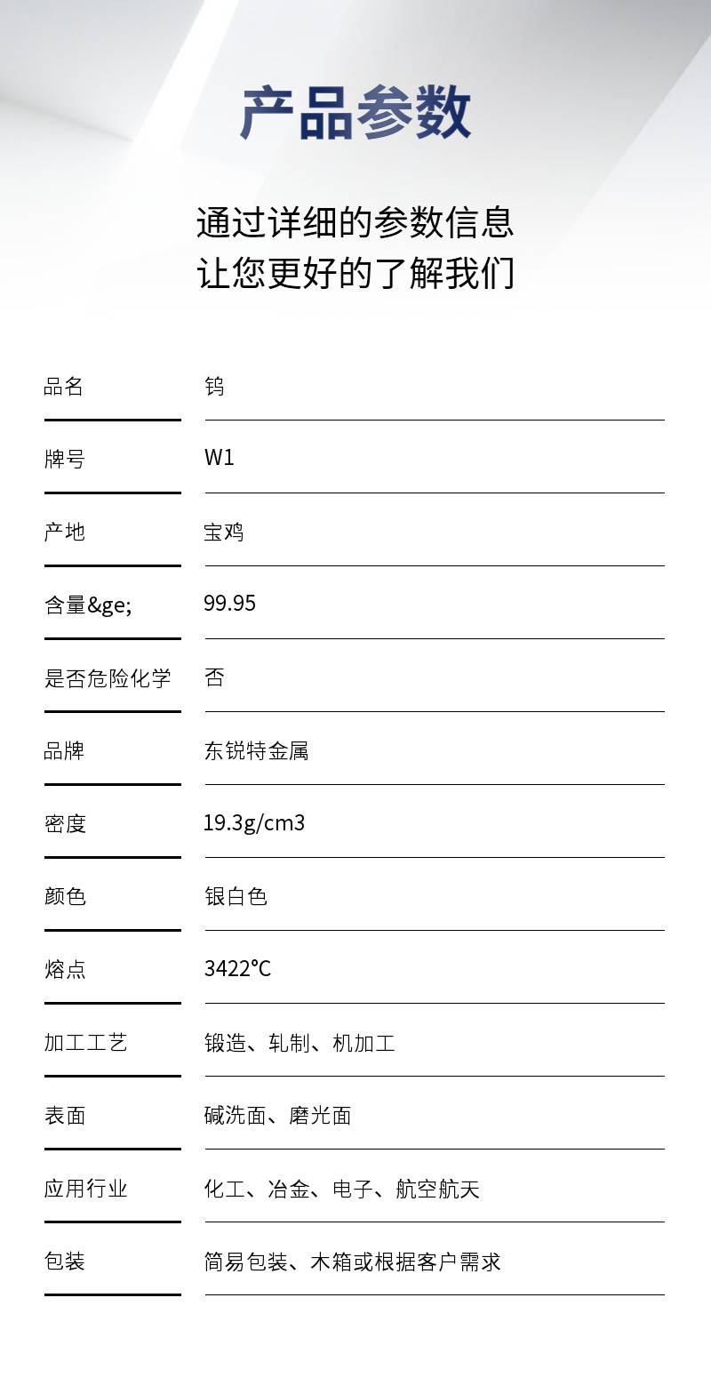 性能 | 高熔点、高硬度、高密度、耐腐蚀 |