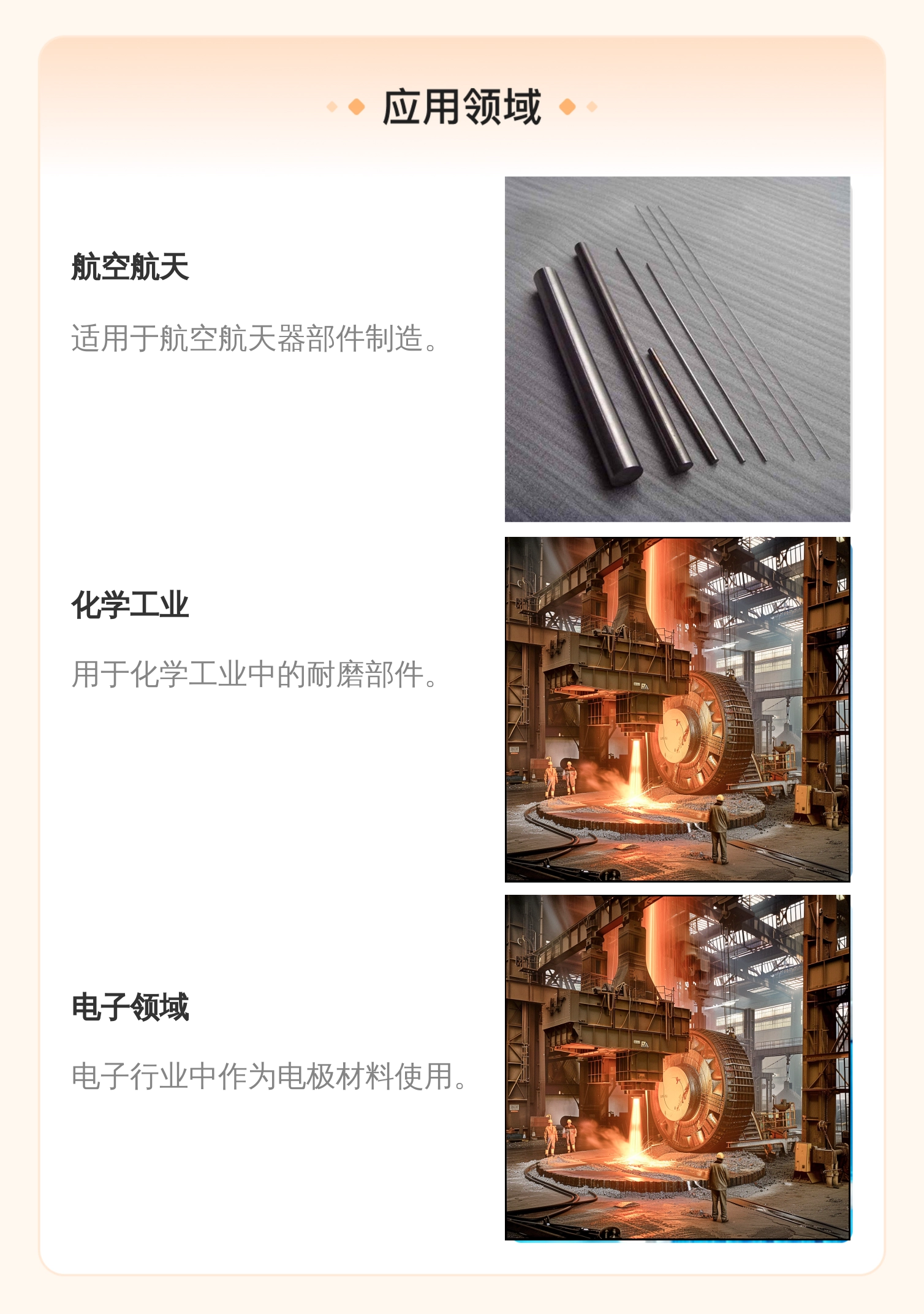 用途范围 | 用于化学、电子、航空和航天等领域 |