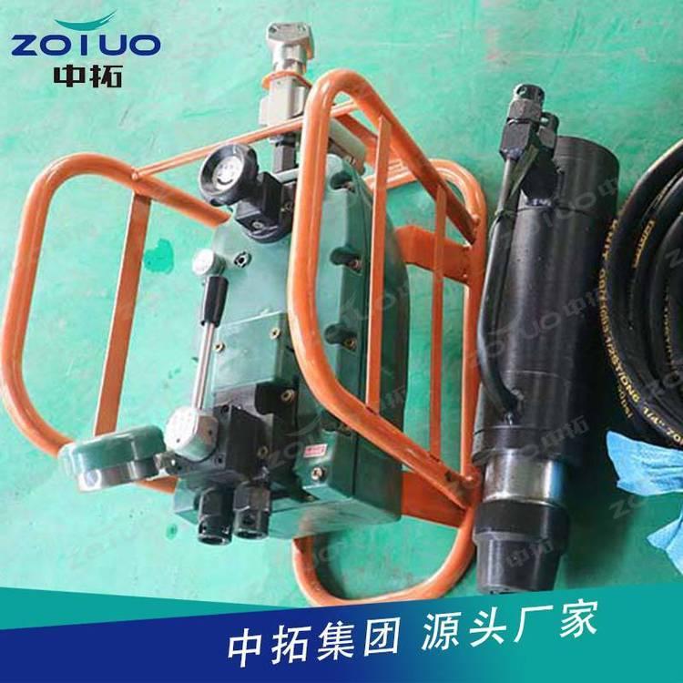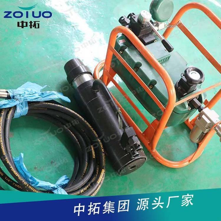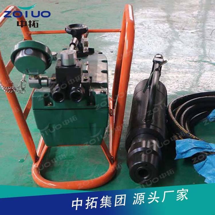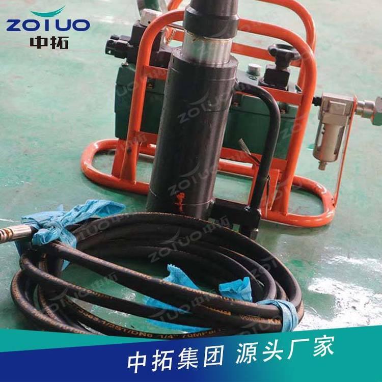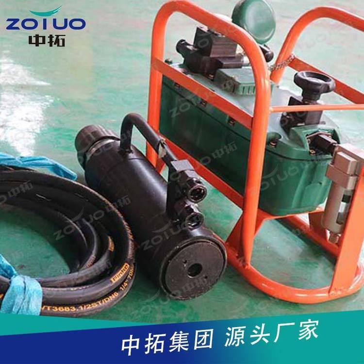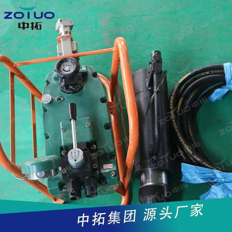 气动锚索张拉机具由张拉千斤顶、QYB-55型气动液压泵以及高压胶管等组成,构成一组煤矿巷道锚索预应力张拉安装的工具。张拉千斤顶内置工具锚,不但实现自动锚固和自动退锚,而且 了操作安全,提高了工作效率。CMGK111