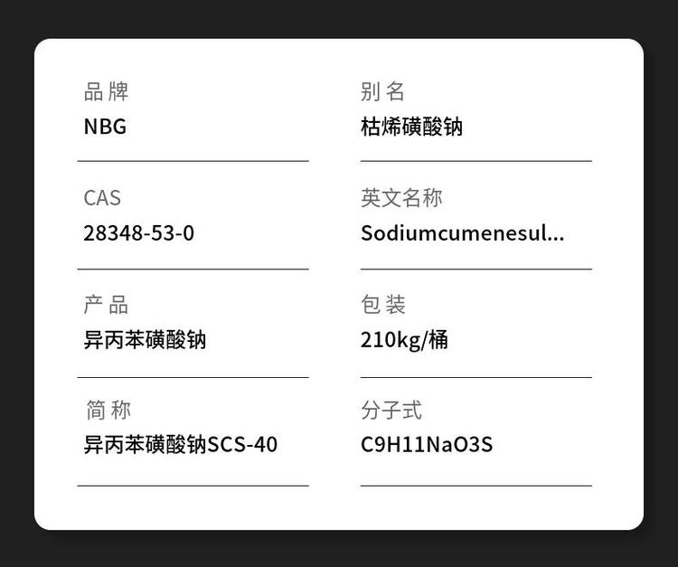 NBG牌异丙苯磺酸钠CAS号28348-53-0 SCS40 增溶剂原料